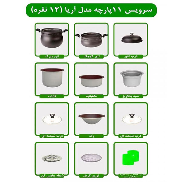 سرویس غذاپز همه کاره مدل ۱۱ پارچه ۱۲ نفره- آریا
